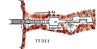 Sein Grab in Deir el-Bahari (TT 311) ist leider sehr zerstört, doch ist es das