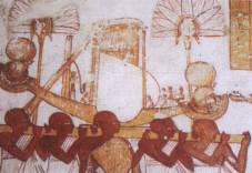 I. + II. Fest des Thusmosis III, die Königsbarke vor dem Tempel wird erwartet