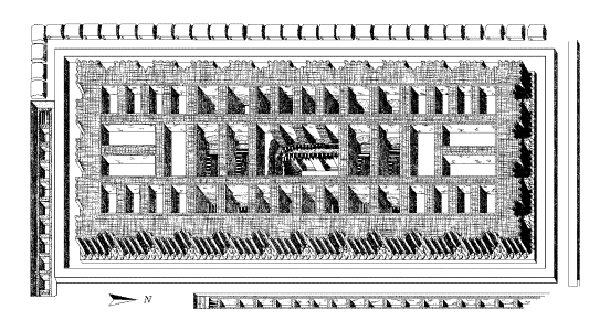 im Quadrat. Es ist eine Lehmziegelgrube, an 3 Seiten mit total 19 Vorratskammern