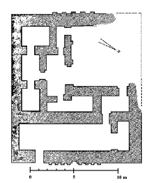 begleitet. Die Mauerfronten sind durch Türöffnungen durchbrochen. Nahe der östlichen