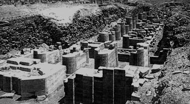 setzte diesen aus vergänglichem Material bestehenden Palast in eine Konstruktion aus „unvergänglichem“ Stein um.