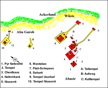 Wegen der bereits starken Bebauung der Nekropole von Saqqara entschloss sich Sahure, seine Grabstätte in Abusir zu errichten.