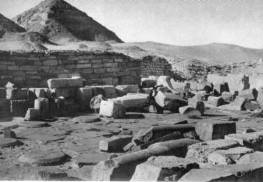 Die Pyramide ist von einer Mauer umschlossen, die auch den Totentempel für den Totenkult des Herrschers und eine