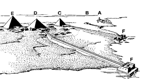 Sonnenheiligtum des Userkaf C: Pyramide des Sahu-Rê D: Pyramide des Ni-user-Rê E: