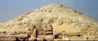 Die Überreste der Pyramide des Djed-ka-Rê wurde 1946 in Saqqara-Süd identifiziert worden. Ursprünglich war sie wohl 79 m x 79 m im Quadrat und 52 m hoch bei einem Winkel von 52°. Heute fehlen die drei oberen Stufen des ehemals 6-stufigen Kerns, sodass sie jetzt nur noch 24 m Höhe misst. Die beiden Kammern und der Sarkophag sind ebenfalls stark zerstört, Reste der Königsmumie wurden aber gefunden. Die Nebenpyramide gilt als Kultpyramide, der Totentempel im Osten wurde über einen Aufweg und ein Pylonenpaar erreicht.