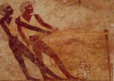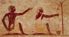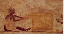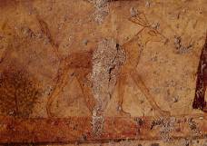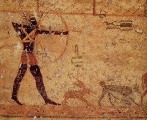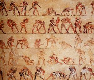 Ostwand: sechs Register mit 220 Ringerpaaren in unterschiedlicher Stellung; drei Register Militärszenen mit Angriff auf eine Festung.