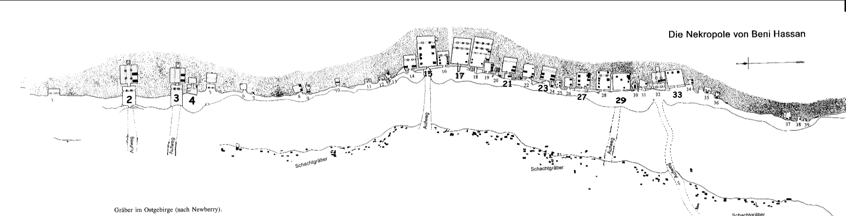 Bei Meir, bei dem 7 km entfernten antiken Qus (Cusae, heute el-Qusiya) befindet sich die Nekropole des 14. oberägyptischen hinteren Sykomorengaus (auch Granatapfelbaumgau genannt).