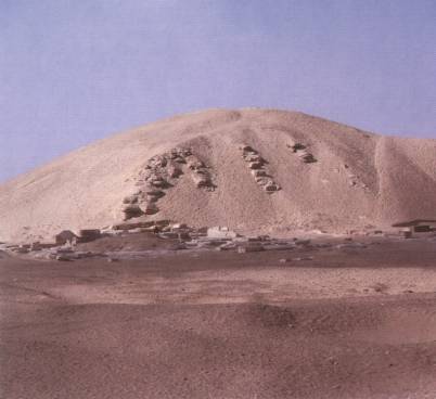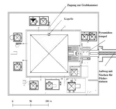 Nebenpyramide und den Totentempel, die äußere aus Lehmziegeln neun kleinere Pyramiden für die königliche Familie.