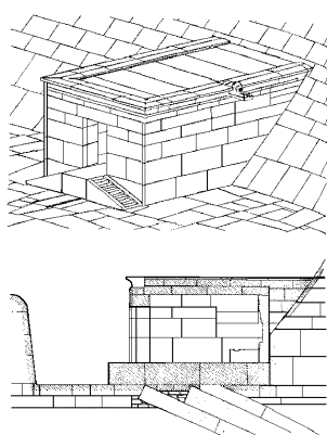 Kammern liefen aus. Die Substruktur der Pyramide liegt unter Wasser und wurde nie erforscht. D.