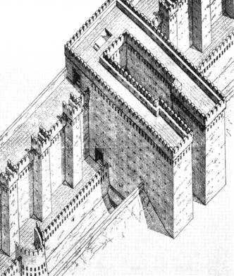 Eingangspylon des Atum-Tempels. Es ist der älteste noch erhaltene
