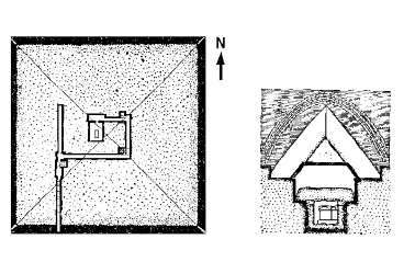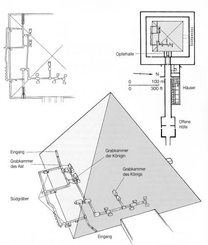 Eingang und Pyramide befand sich ein Totentempel, der einmalig gewesen sein
