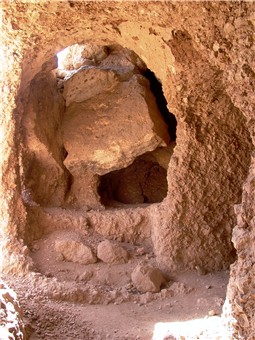 Die beiden folgenden Bilder zeigen die beiden vordern Flügel des Grabes. Auf dem linken Foto sieht man rechts - gegenüber dem Grabeingang den Beginn des axialen Korridors, auf dem Foto des rechten Flügels erkennt man einen Schacht am Ende des Grabes.