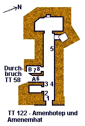 Amenhoteps Grab TT 122 in Sheik Abd el-Korna (upper enclosure) weist eine