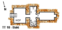 Baki' s Grabanlage (TT18) befindet sich in Dra Abu el-Naga.