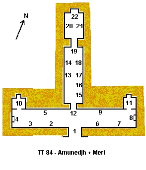 Das Grab TT 84 liegt in Sheik Abd el-Korna (upper enclosure). Champollion