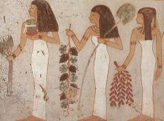 Hervorragend erhaltene Darstellungen eines Festbanketts, Musikantinnen und Tänzerinnen.