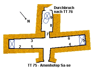 el-Korna (upper enclosure) und trägt die Bezeichnung TT 75 (Champollion