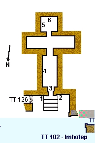 Imhotep war "Königlicher Schreiber" und "Kind desKap" zur Zeit des Amenhotep III. Zeitlich ist Imhotep sehr gut zuzuordnen, da sich im Grab des Chaemhat (TT 57) zwei Statuen von ihm befinden. Beide waren miteinander verwandt und beide nutzten den gleichen Hof für ihr Grabmonument. Imhoteps Grab TT 102 in Sheik Abd el-Korna scheint aber ein undekoriertes Grab aus der frühen 18. Dyn zu sein, das er übernommen hat.
