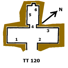 Sein heute völlig zerstörtes Grab (TT 120) wurde in Sheik Abd el-Korna