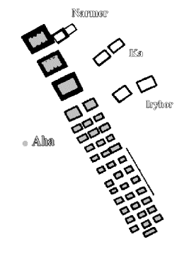 des Aha in Abydos, Lageplan (01-01-05, nach DAIK) Wichtig war die Auffindung von Etiketten