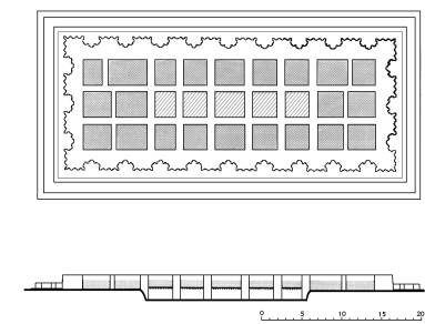 Saqqara-Mastaba misst 41,6 x 15,55 m und die Wände sind nischengegliedert und