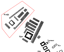 Das Grab des Wadji befindet sich in Abydos (Nr. Z) und misst 11,94 x 9,30 m