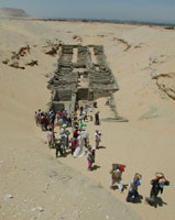 in der 3. Dynastie errichtet hat. Im Inneren besteht der Bau aus kleinen Kammern mit verwinkelten Zugängen.